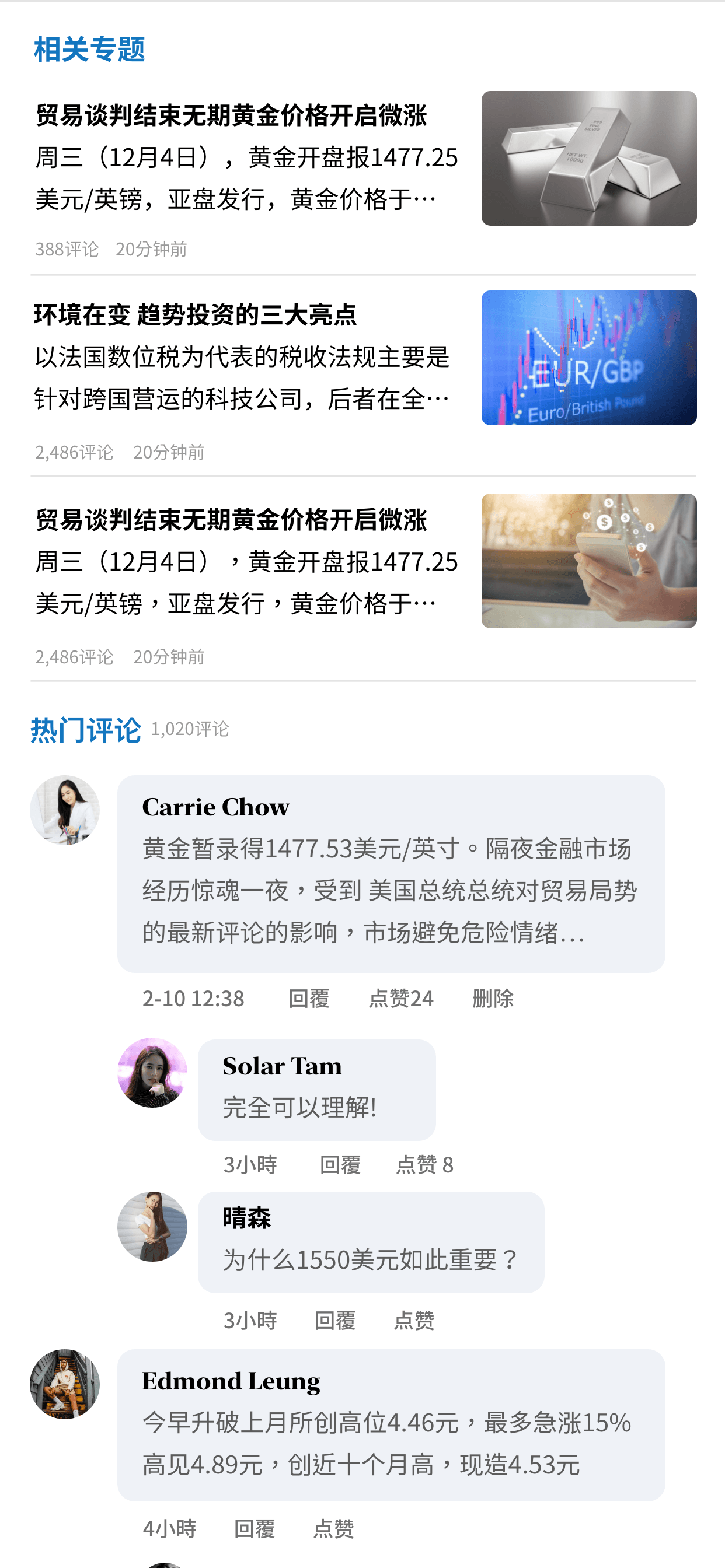 来自全球不同投资爱好者在线实时互动交流,分享个人投资经验。